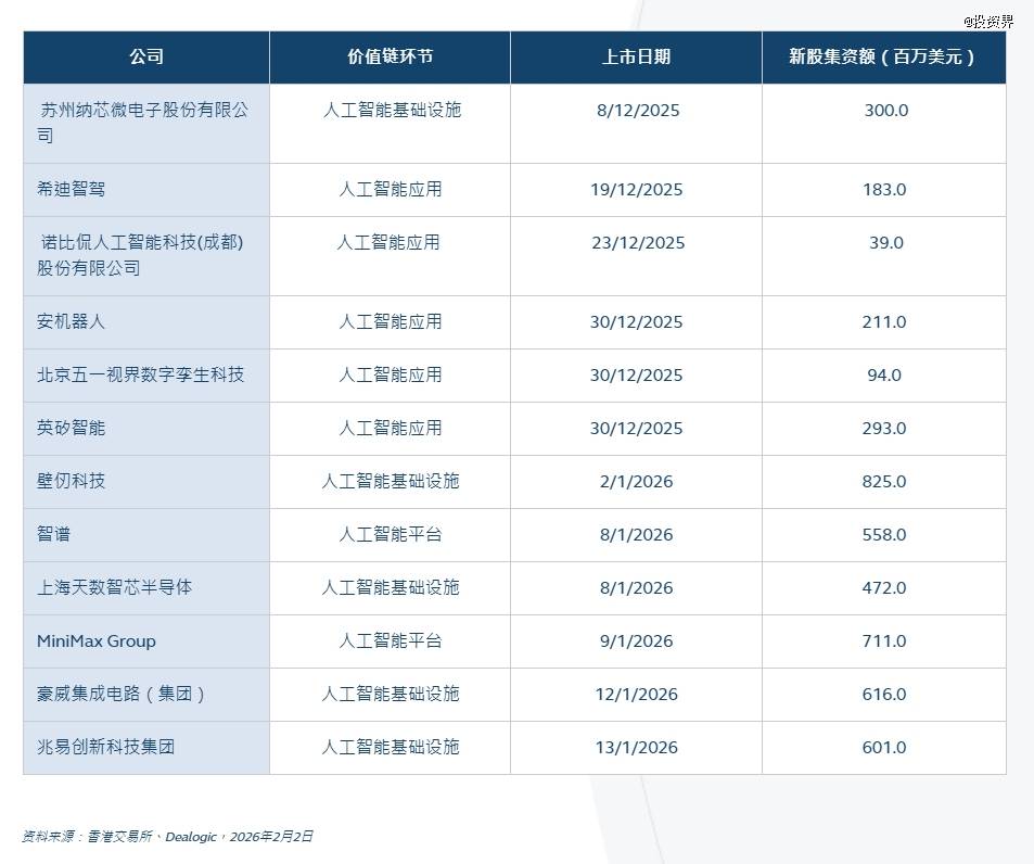 人工智能公司的基石投资者阵容都良多元化。由于市场前提将会越来越成熟。亦包罗特地开辟计较相关模子的团队,并答应合伙历的企业以保密体例提交上市申请。客岁12月和本年1月共有十二家人工智能价值链(包罗人工智能使用及人工智能根本设备)公司正在港上市。将人工智能算法取芯片或根本设备深度融合。客岁新设的包罗科企专线,基石认购率平均达到根本总发售规模的58%,买卖所比来取易方达基金签定和谈,近年人工智能价值链各范畴的企业接踵来港集资!